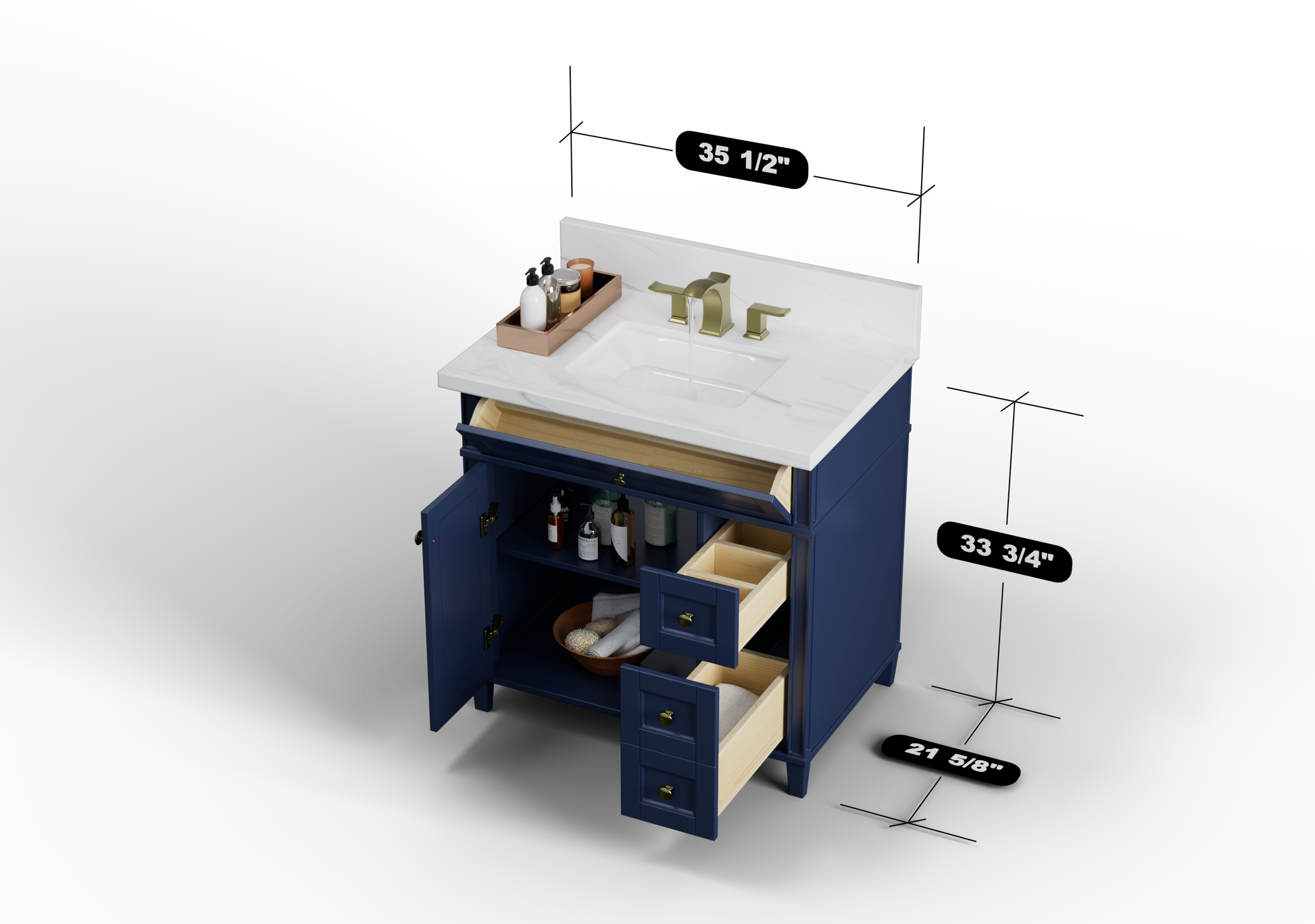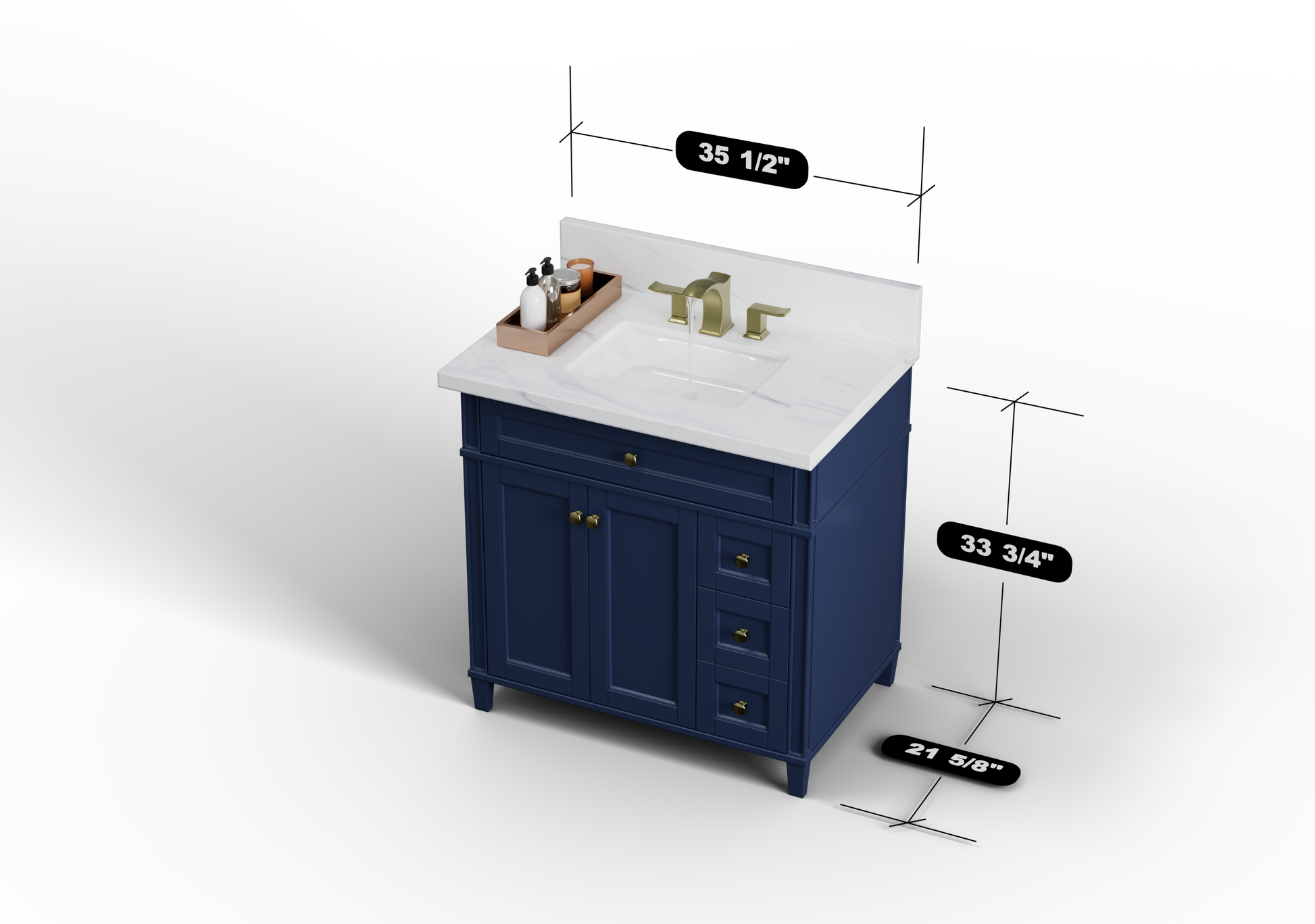 Kensington 35.5 Right Drawers in All Wood Vanity in Navy Blue - Cabinet Only