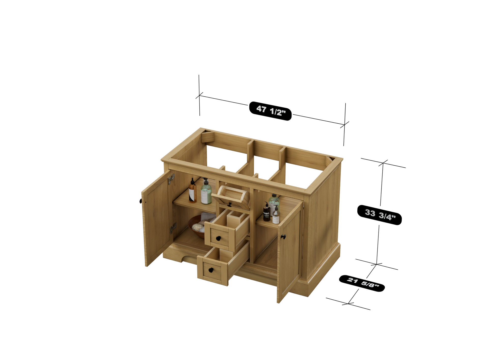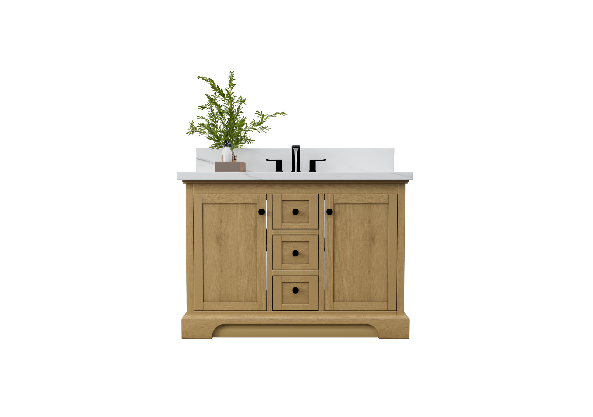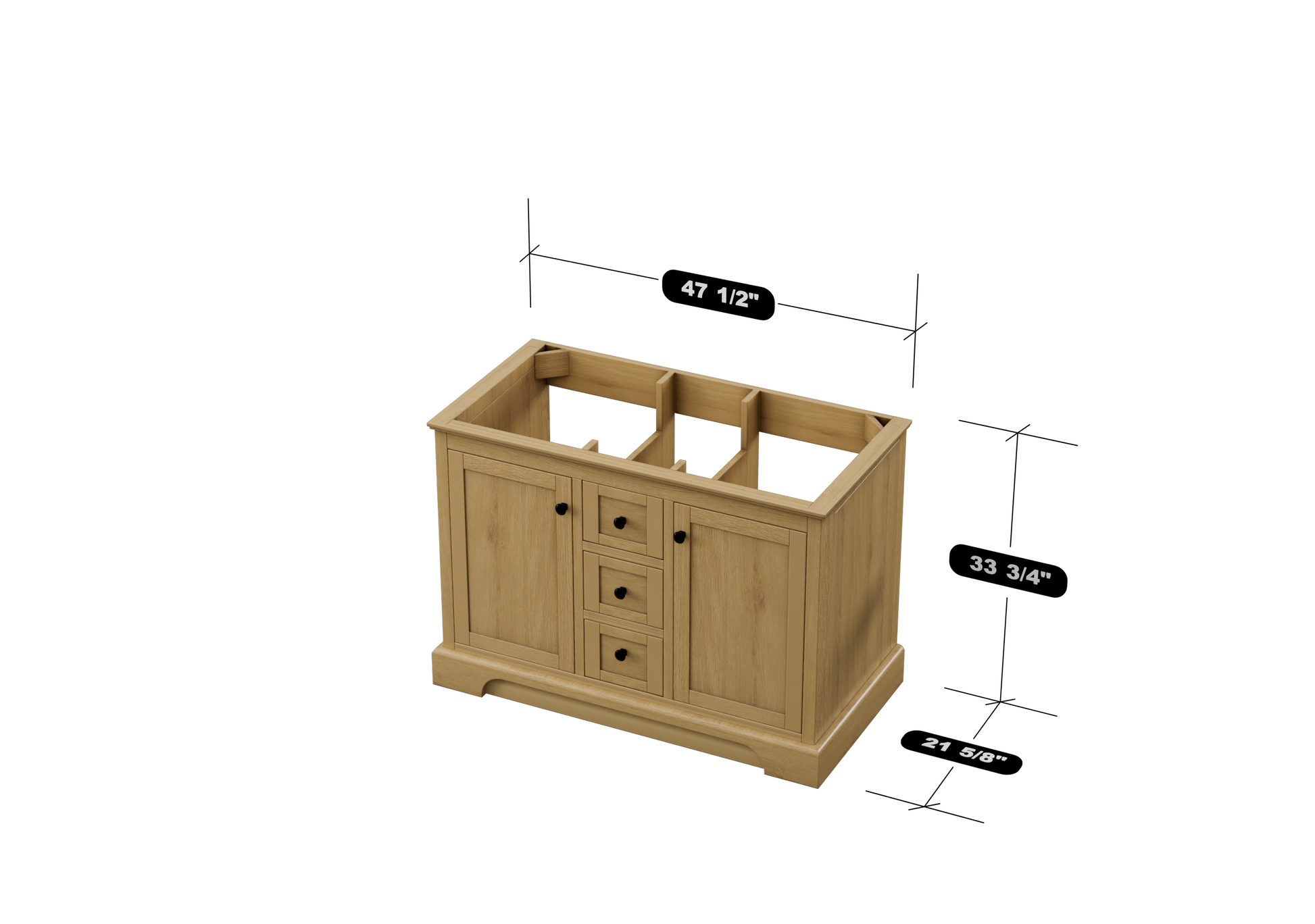 Marietta 47.5 inch Single or Double Bathroom Vanity in Desert Oak with Matte Black Hardware Base Cabinet Only.