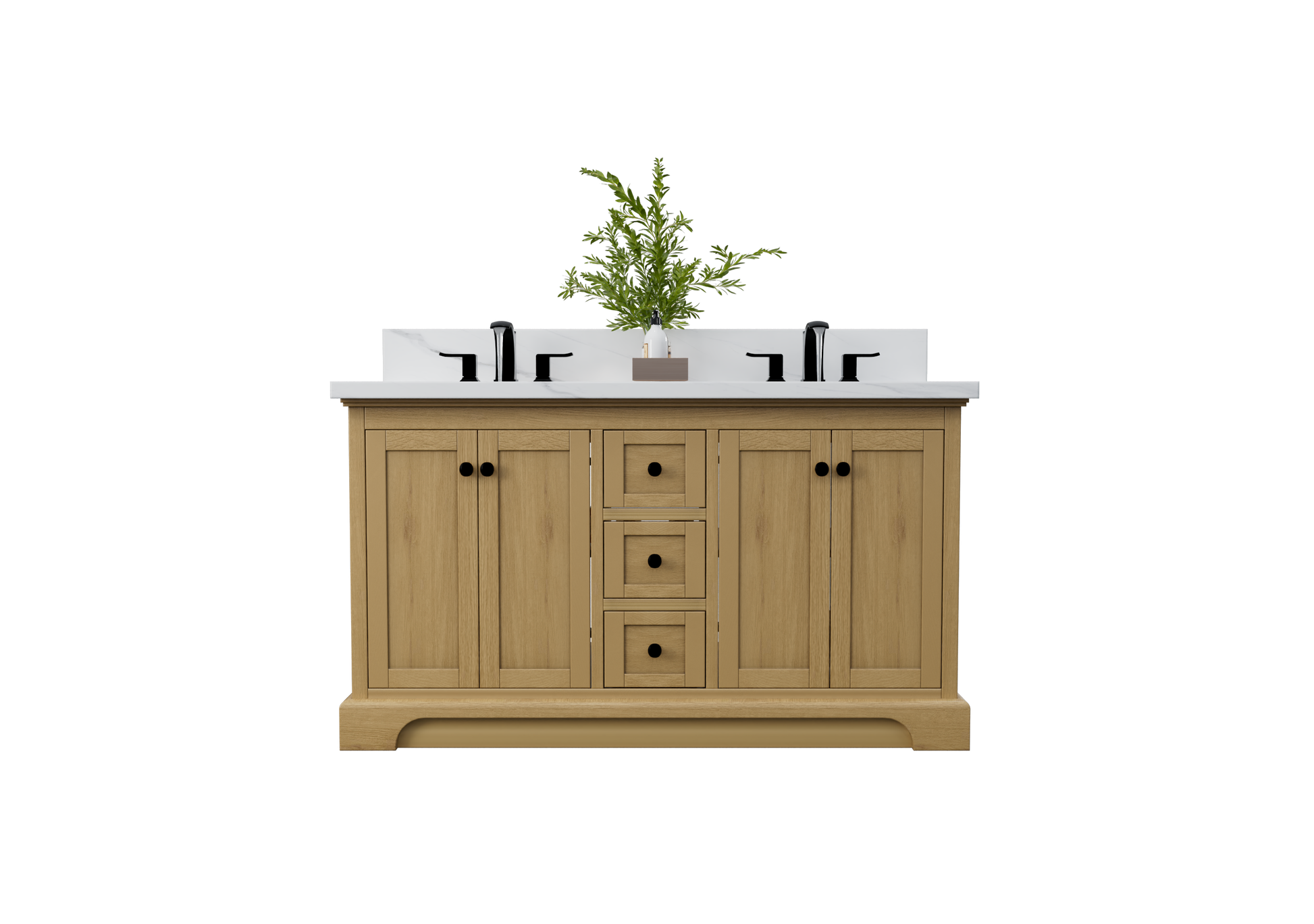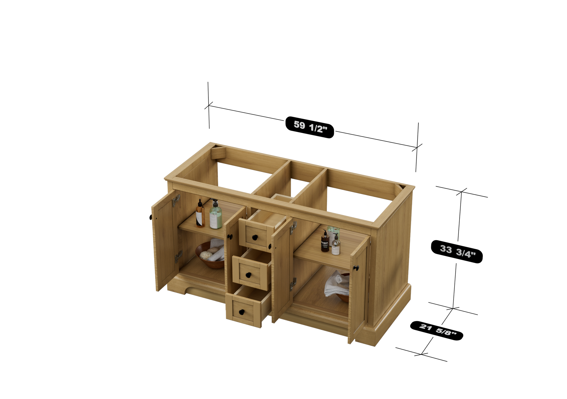 Marietta 59.5 inch Double Bathroom Vanity in Desert Oak with Matte Black Hardware Base Cabinet Only.