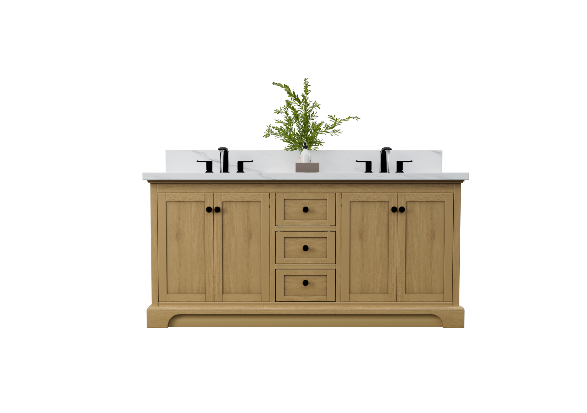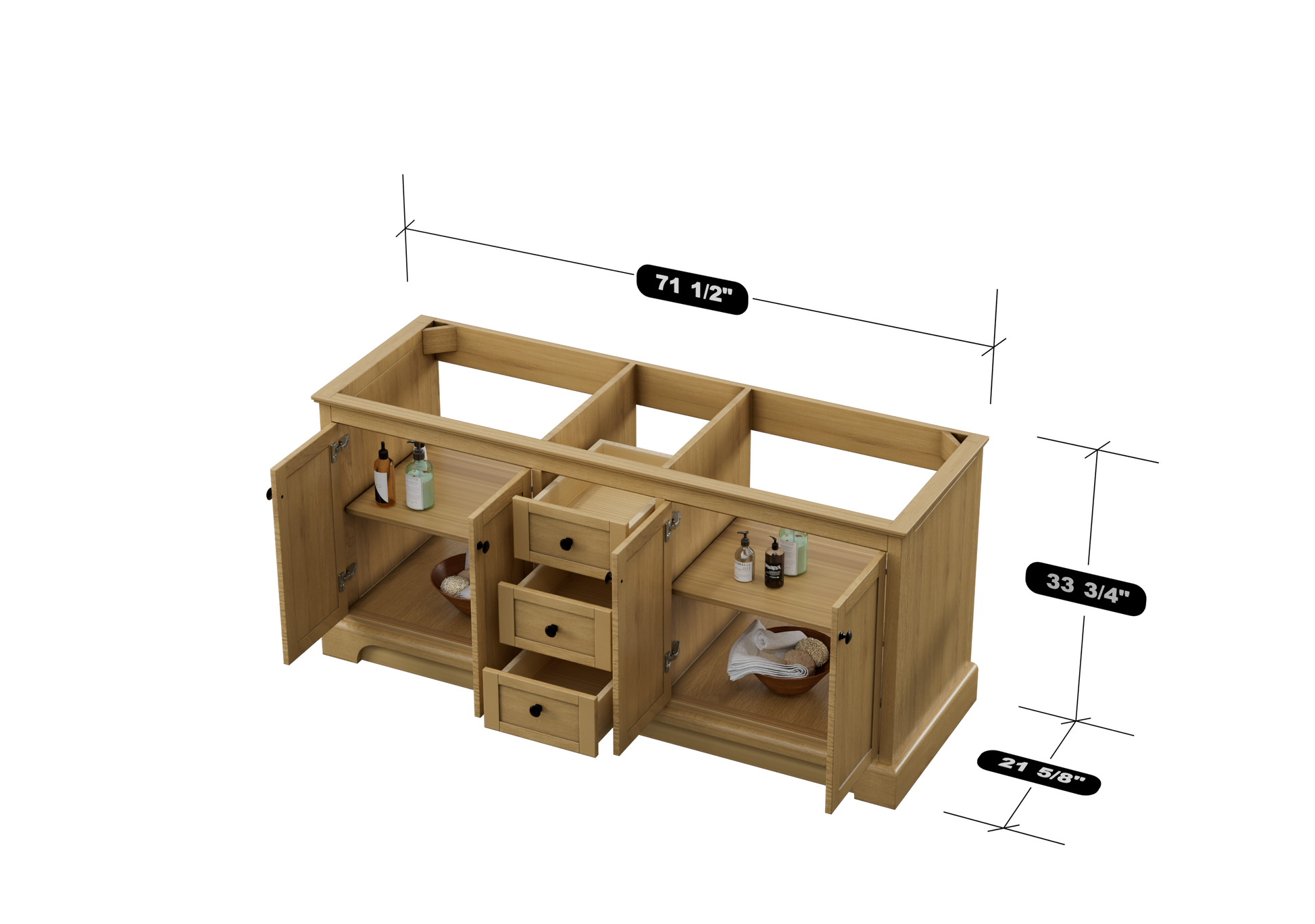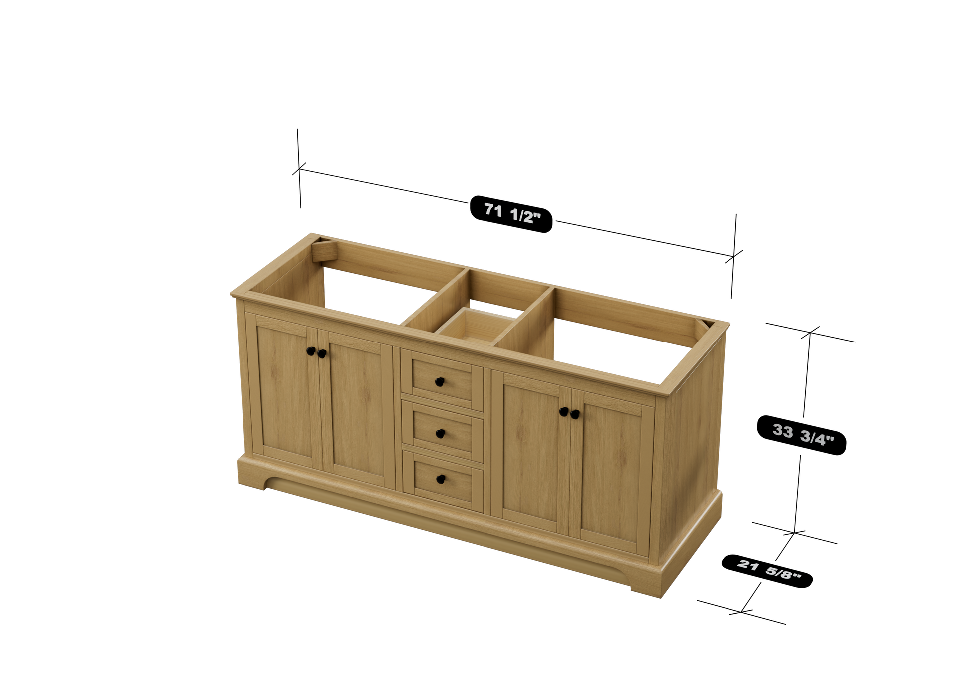Marietta 71.5 inch Double Bathroom Vanity in Desert Oak with Matte Black Base Cabinet Only.