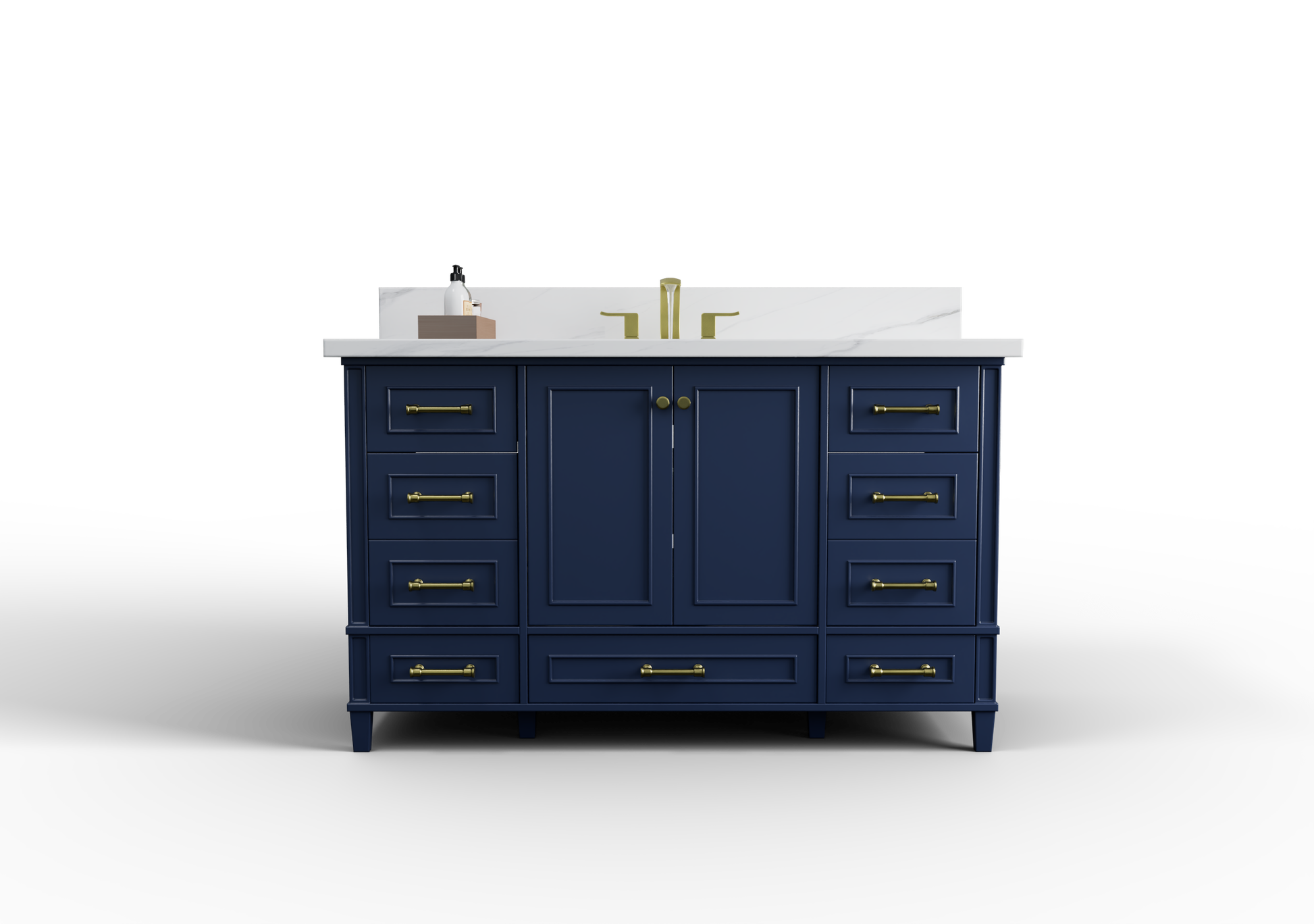 This transitional cabinet is crafted with beautiful details, from the tapered legs to the hand-carved pilasters. With a blend of both Traditional and Transitional styles, the charm of the Windsor Collection is fitting for a variety of interior designs. Setting a crisp and serene environment, the Windsor Collection is available in 2 of our best finish colors- bright white and navy blue. With brushed gold hardware, the style of this vanity is designed for modern living. Accentuate your bathroom with an updated and classic look using the Windsor Collection!