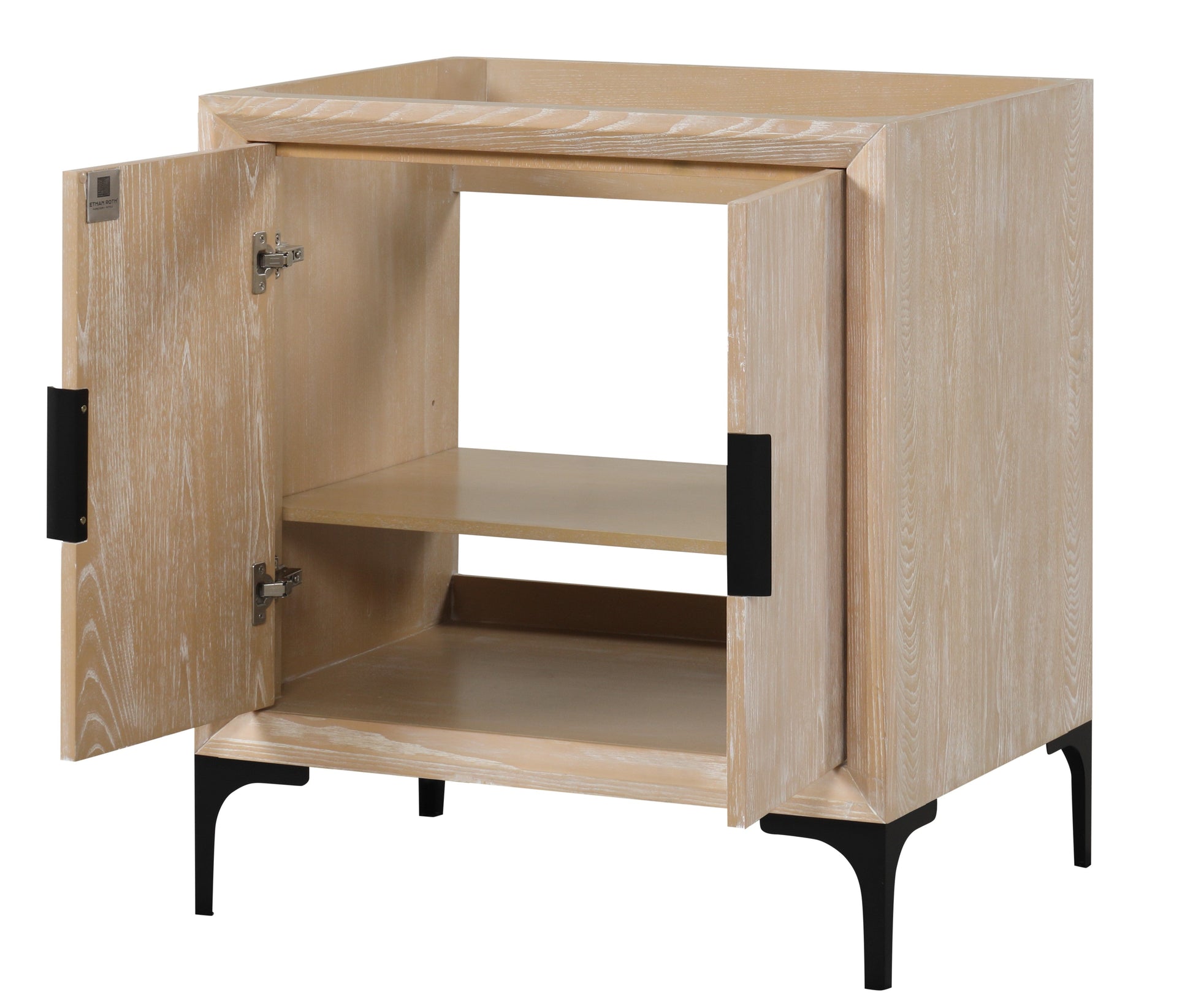 Oxford 30 Inch Bathroom Vanity in Whitewashed Ash with Matte Black Hardware.