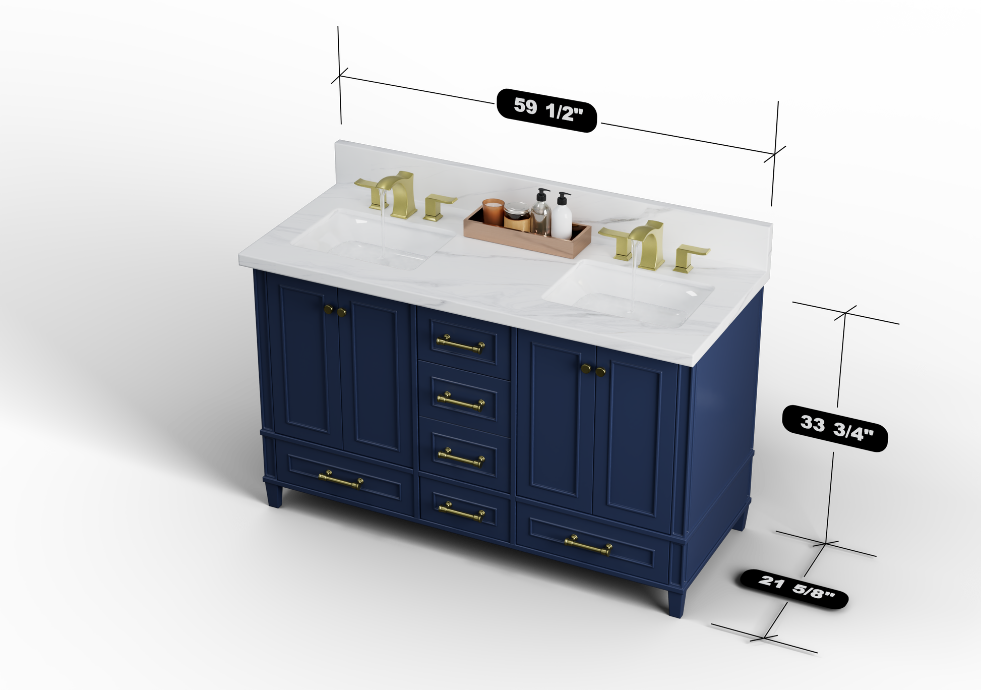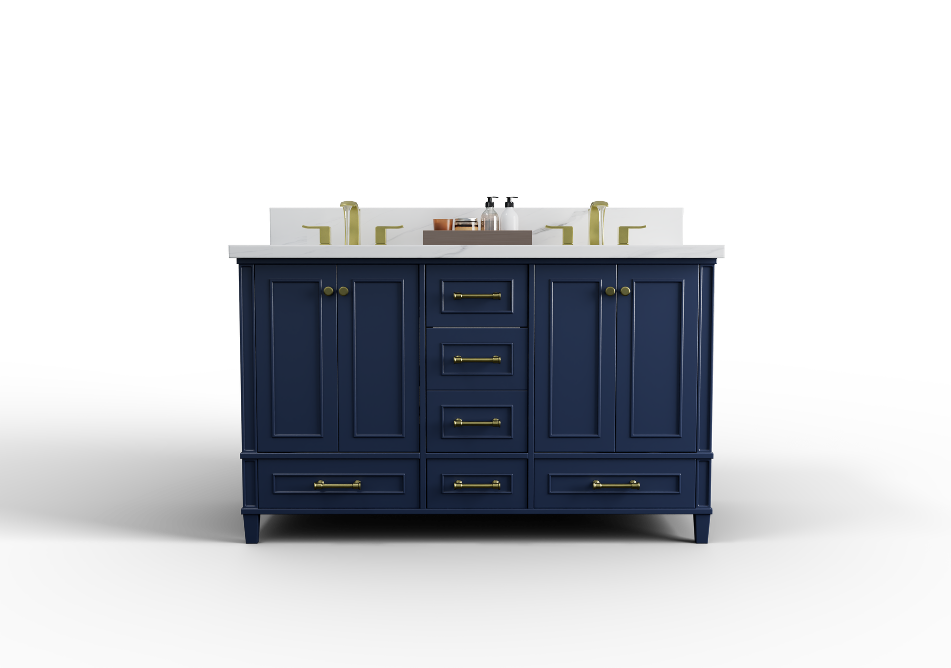 Windsor 59.5 Double in All Wood Vanity in Navy Blue - Cabinet Only
