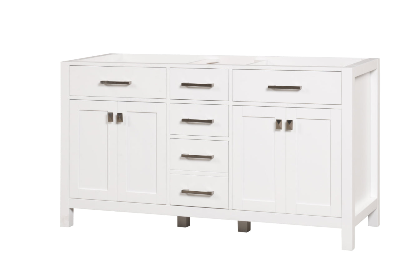 London 60 Inch- Double Bathroom Vanity in Bright White