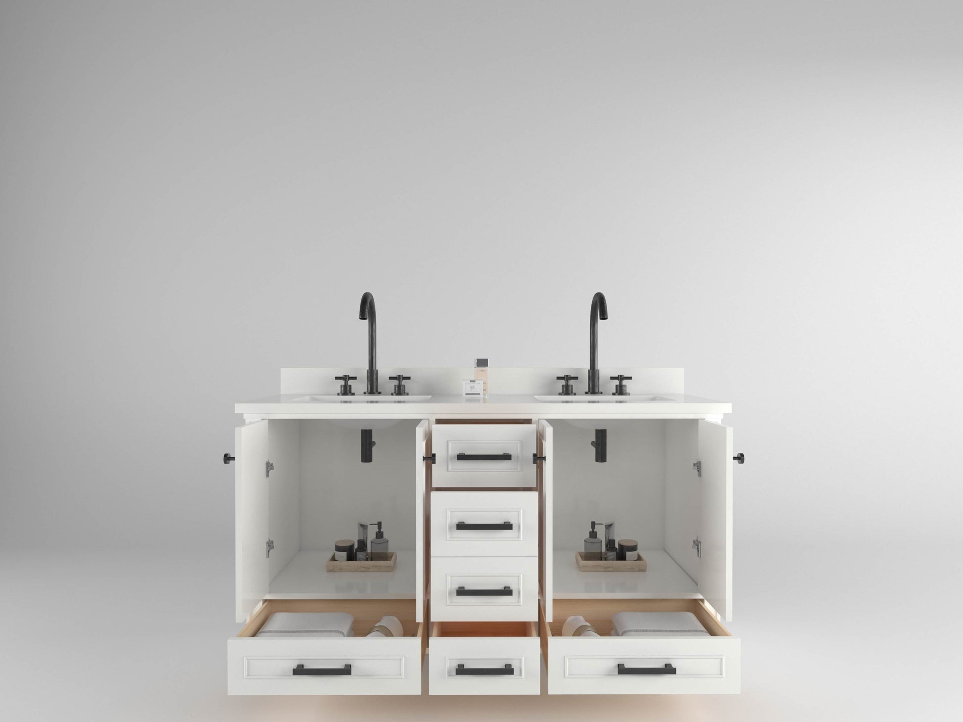 This transitional cabinet is crafted with beautiful details, from the tapered legs to the hand-carved pilasters. With a blend of both Traditional and Transitional styles, the charm of the Windsor Collection is fitting for a variety of interior designs. Setting a crisp and serene environment, the Windsor Collection is available in bright white. With satin nickel hardware, the style of this vanity is designed for modern living. Accentuate your bathroom with an updated and classic look using the Windsor Collection!